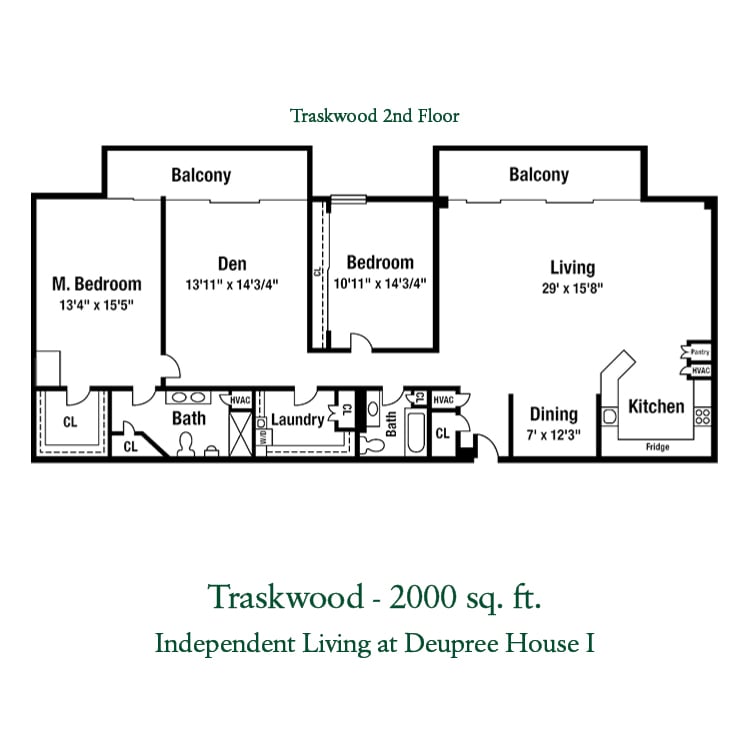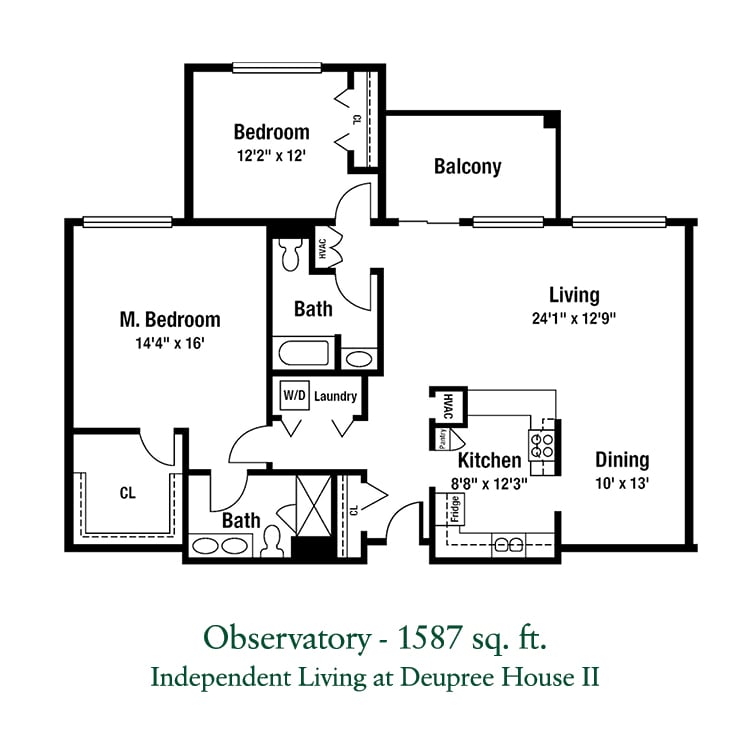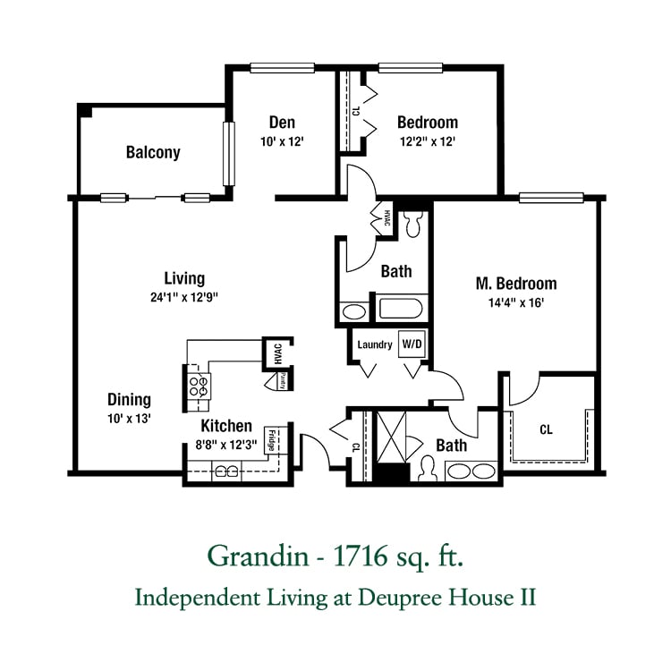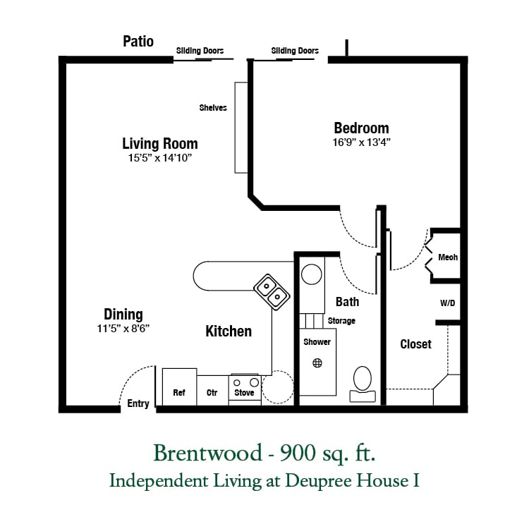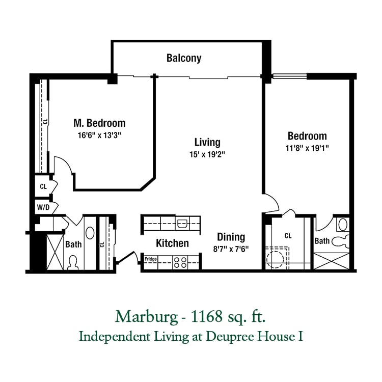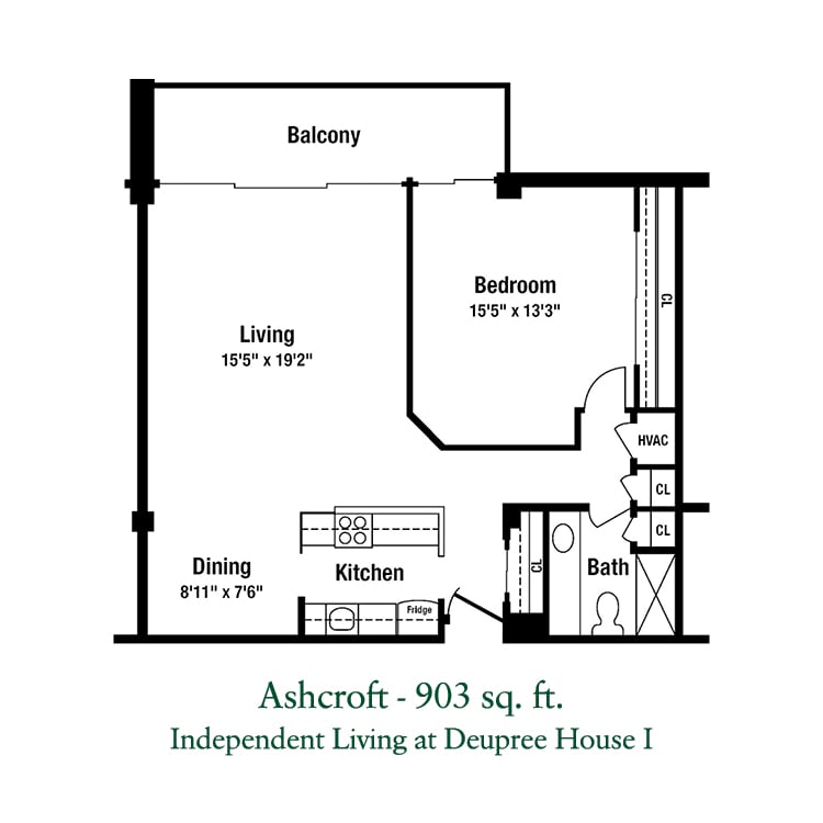 Our senior living apartments come in a variety of one- and two-bedroom styles. Take a virtual tour and browse our floor plans below for examples of the spacious and inviting apartments you can call home. You can also visit our Living & Care page for more on the levels of living at Deupree House.