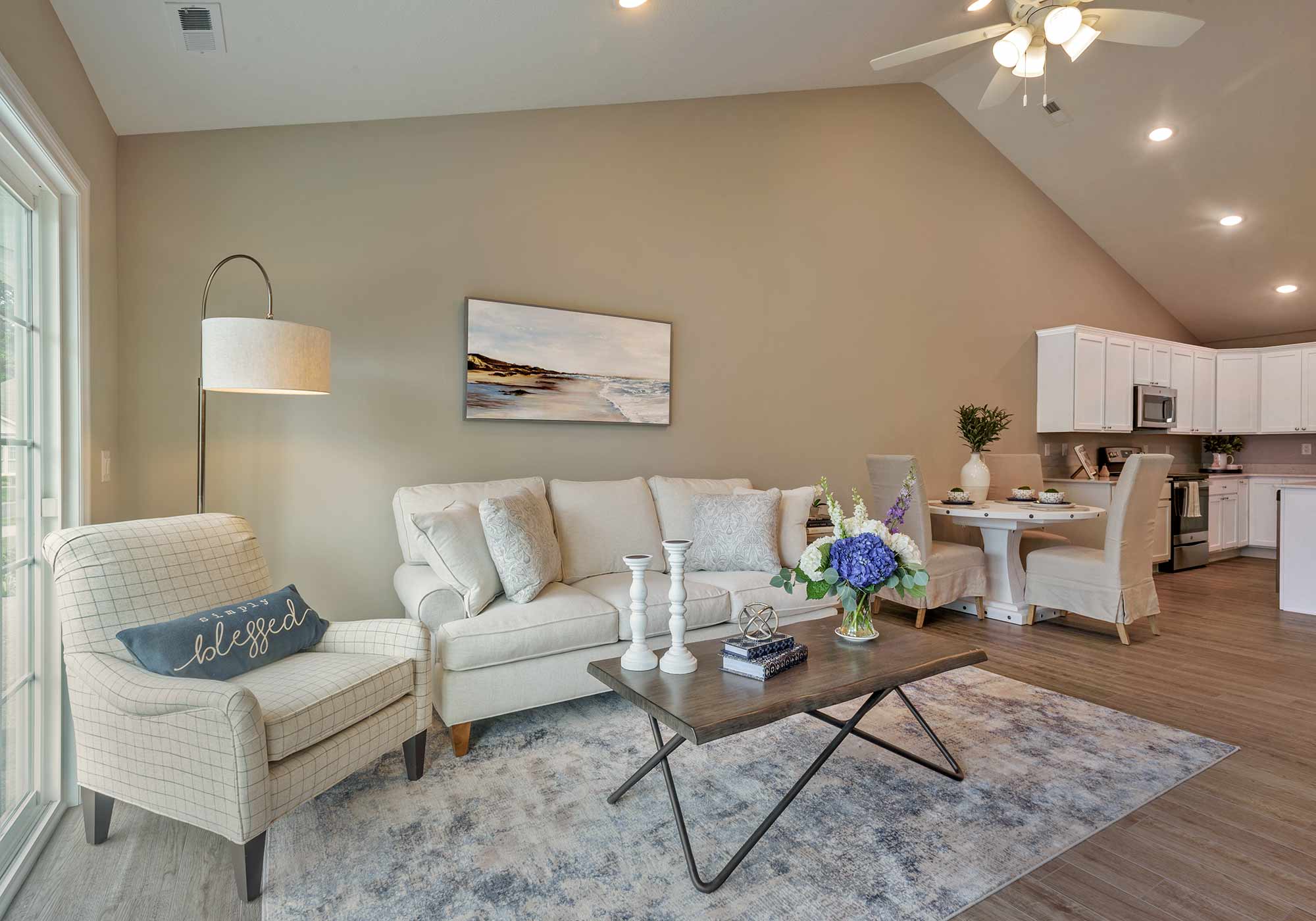Residents have options to choose the home that’s best for them to meet their personal needs. There are two different floor plans to choose from, and homes range from 1,600 to 2,100 square feet so that anyone can have just the right amount of room. These residents will have their two-car garage to make life convenient, and no steps in the design.